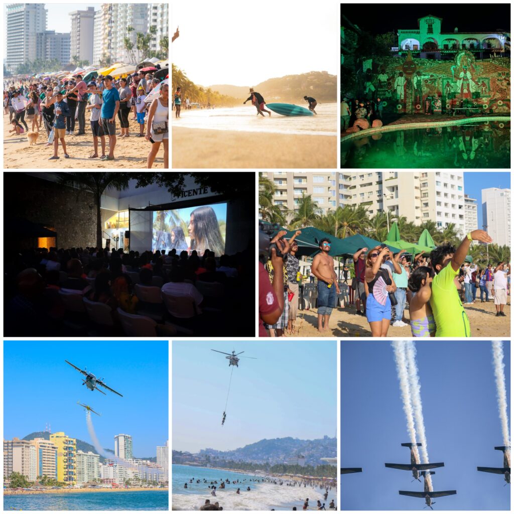 Acapulco, Gro., 23 noviembre 2025.- El Hogar del Sol continúa consolidándose como un referente turístico nacional gracias a los eventos de alto impacto realizados del 21 al 23 de noviembre, periodo durante el cual los destinos turísticos del estado recibieron a miles de visitantes atraídos por su riqueza natural, gastronómica y cultural, así como por espectáculos de talla internacional.