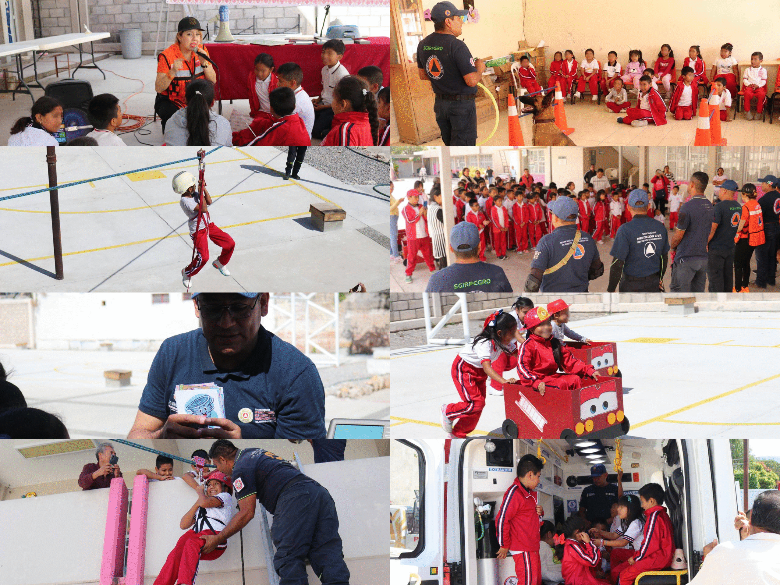 Con esta actividad, las niñas y niños participaron en actividades lúdicas y formativas donde recibieron nociones sobre, evacuación en caso de emergencia, identificación de riesgos, alertamiento sísmico y conocimientos básicos del clima, así como la atención de emergencias; además como parte de la demostración, los estudiantes convivieron con integrantes de la Unidad Canina, observando sus habilidades en tareas de búsqueda y rescate.