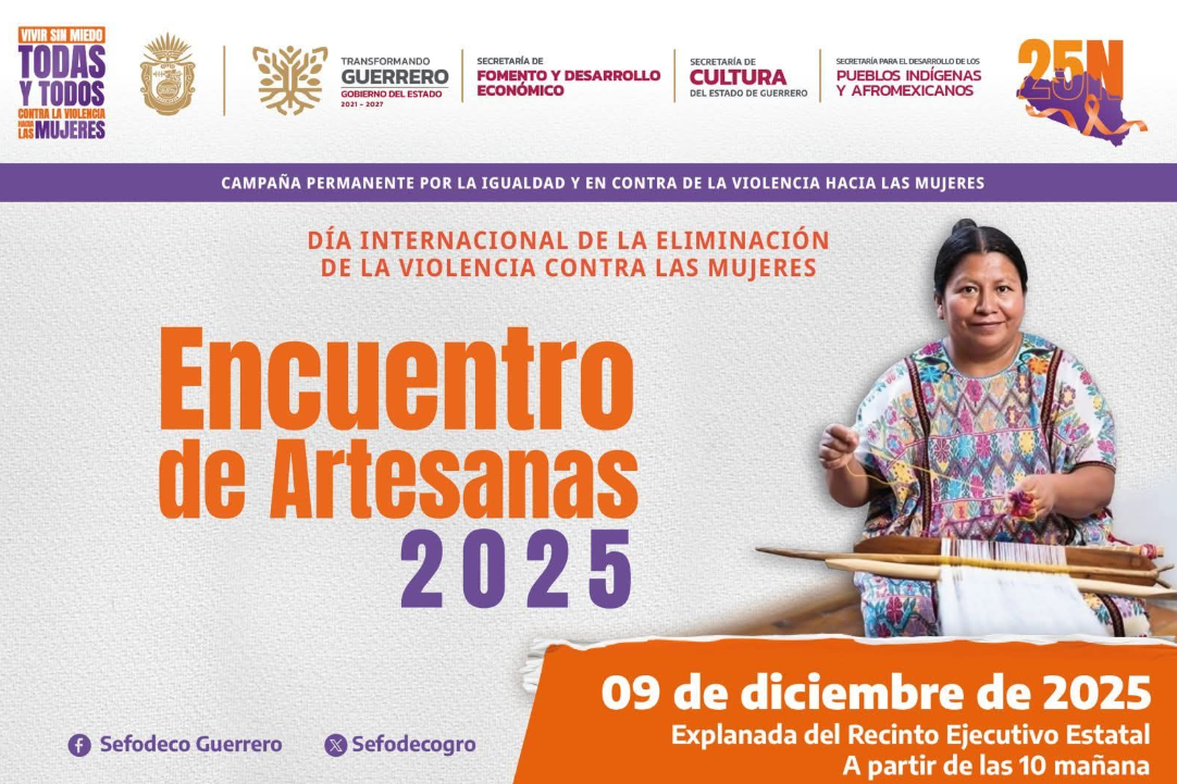 La Secretaría de Fomento y Desarrollo Económico convoca a la población a asistir al Encuentro de Artesanas 2025, un espacio dedicado a la creatividad y el trabajo de mujeres de distintas regiones del estado, realizado en el marco de los 16 Días de Activismo para la Erradicación de la Violencia de Género.