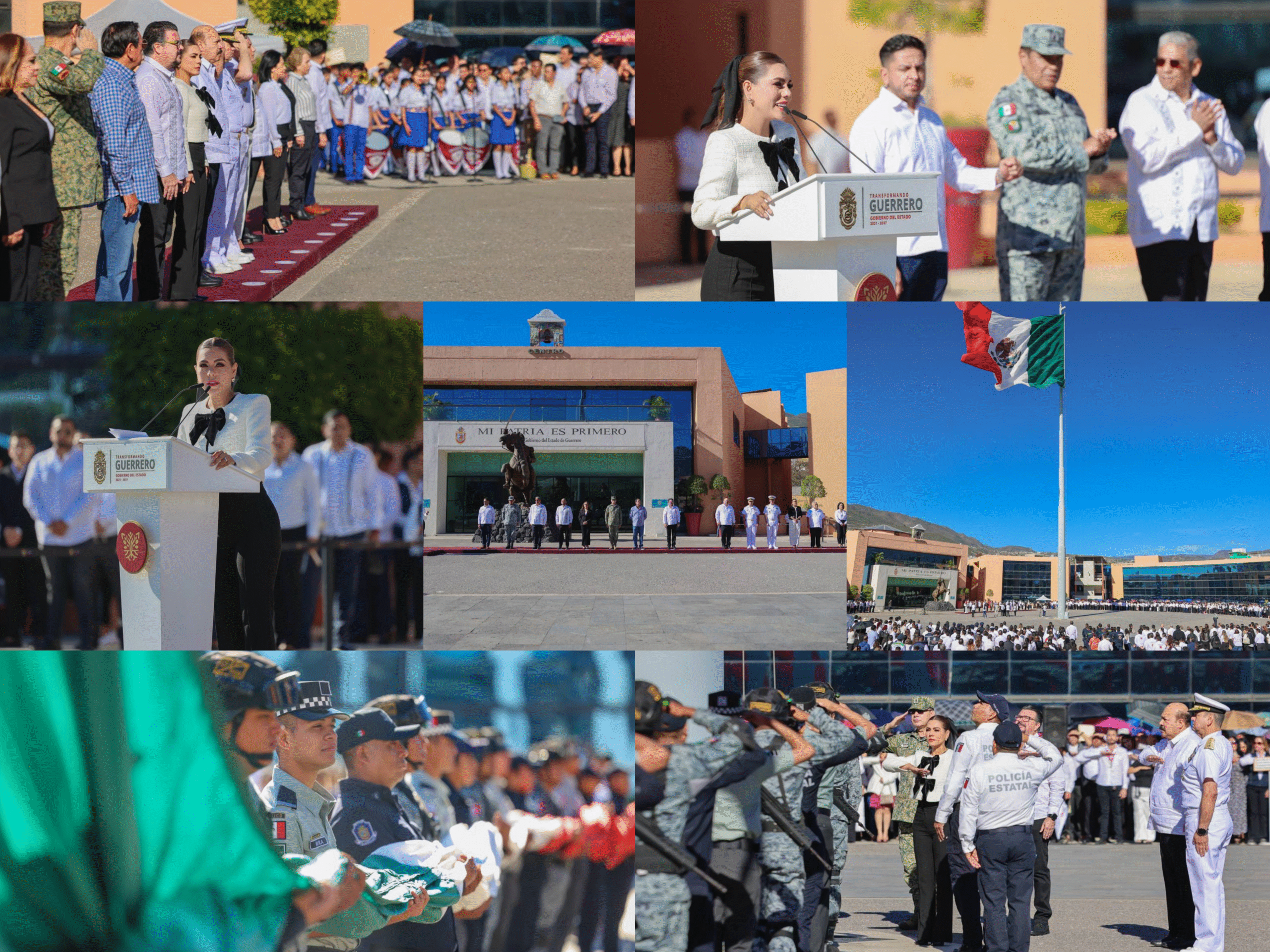 Al presidir la ceremonia cívica mensual de Izamiento de Bandera en la Casa del Pueblo, correspondiente al mes de enero, la mandataria estatal reconoció el trabajo de las Fuerzas Armadas, las corporaciones de seguridad y de quienes integran la Mesa de Seguridad en Guerrero, luego de estos resultados favorables para la paz en la entidad.