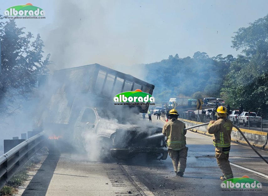 Se incendia camioneta de la empresa IDHASA en la Autopista del Sol; el chofer resultó ileso