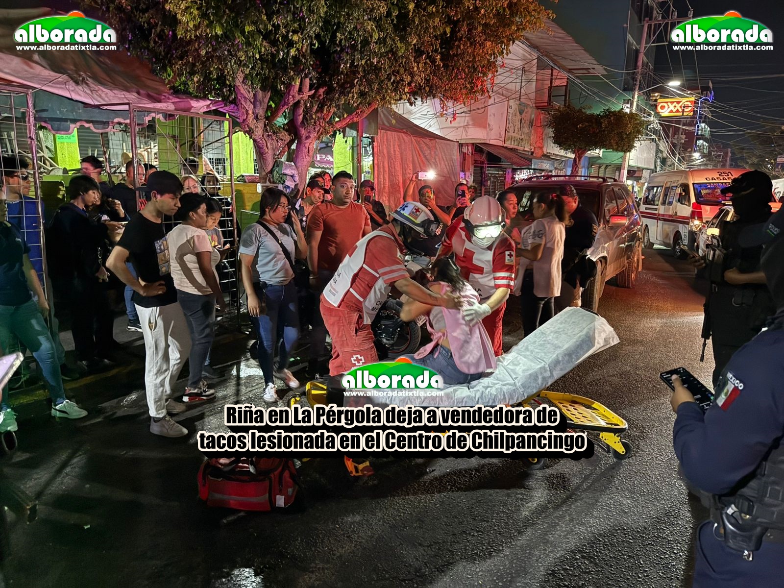 Chilpancingo, Gro., 11 de marzo de 2026.- Una mujer que se dedica a vender tacos, resultó lesionada durante una riña registrada la noche de este miércoles en el punto de venta de comida conocido como La Pérgola, ubicado en la colonia Centro de Chilpancingo.