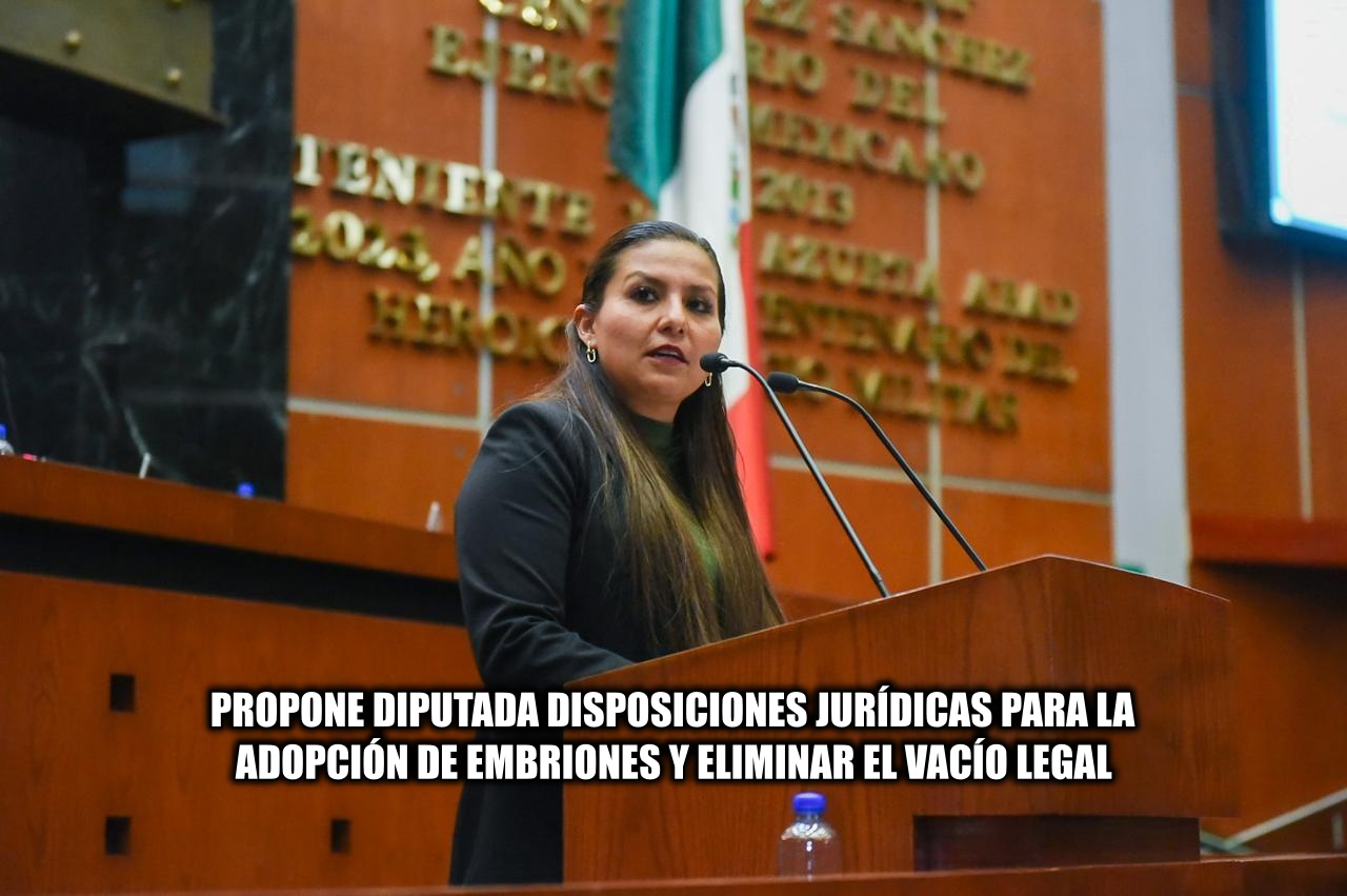 La diputada Violeta Martínez Pacheco (Morena) presentó una iniciativa de adición al Código Civil mediante la cual se reconoce la adopción de embriones, con el objetivo de establecer reglas claras, otorgar certeza jurídica y garantizar derechos a las niñas y niños que nazcan bajo esta modalidad, así como a quienes decidan formar una familia a través de este procedimiento.