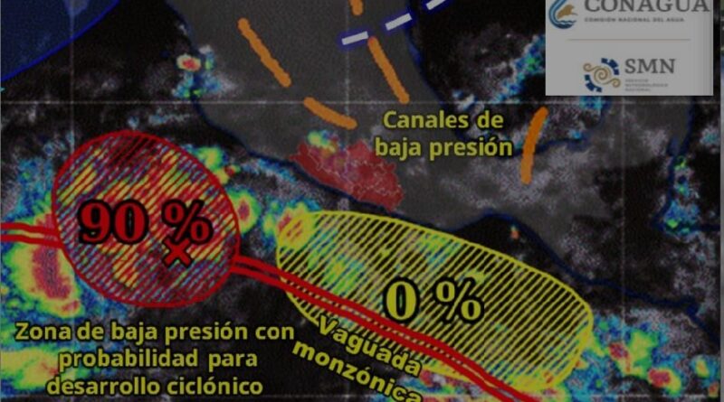 Asimismo, indicó que se mantiene en vigilancia un Sistema de Baja Presión localizado aproximadamente a 760 kilómetros al suroeste de Acapulco, el cual presenta un 90% de probabilidad para desarrollo ciclónico en los próximos siete días y podría alcanzar la categoría de Tormenta Tropical en el transcurso de este sábado, provocando lluvias muy fuertes durante el fin de semana.
