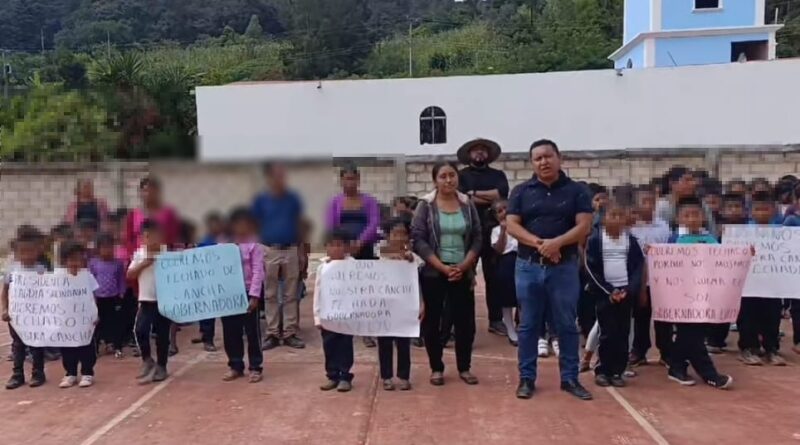 Protesten en primaria hueycatenango, piden techado d