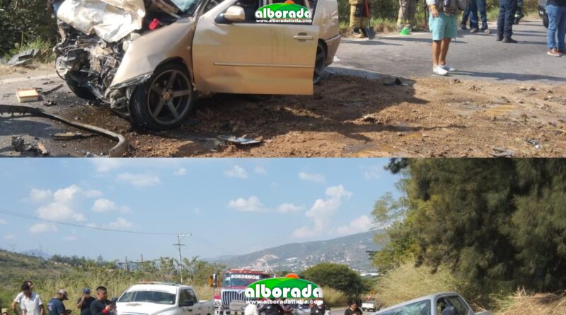 Chilpancingo, Gro., 09 de noviembre de 2025.- La tarde de este domingo, sobre la carretera federal Chilpancingo-Acapulco, a la altura de la colonia Los Pinos, en la comunidad de Petaquillas, municipio de Chilpancingo, se registró un aparatoso choque entre un automóvil y una camioneta, que dejó como saldo cinco personas gravemente heridas, entre ellas un menor de tres años. Todos fueron trasladados al Hospital General “Dr. Raymundo Abarca Alarcón”.