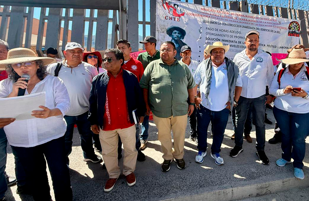 Los funcionarios acudieron al exterior del ROPEG, donde representantes del SUTCobach-Gro y sindicatos realizaron la entrega del pliego petitorio.