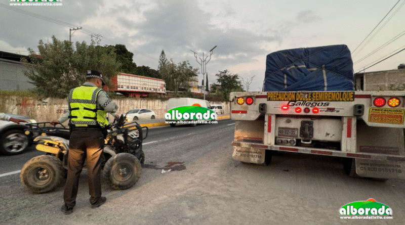 Chilpancingo, Gro., 21 de noviembre de 2025.- La tarde de este viernes, una menor de edad que conducía una cuatrimoto, acompañada de otra mujer, se impactó contra la parte trasera de un tráiler que se encontraba estacionado a orilla de la carretera federal México-Acapulco, en el bulevar Chilpancingo-Petaquillas, cerca de la cementera CEMEX, al sur de la capital.
