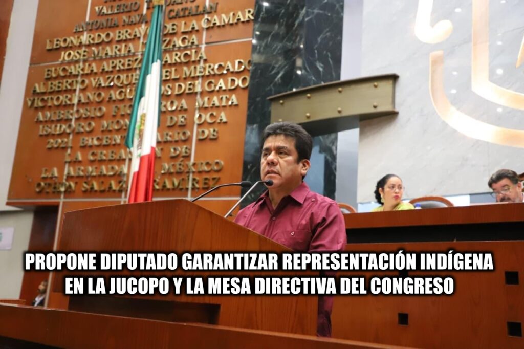 - PROPONE DIPUTADO GARANTIZAR REPRESENTACIÓN INDÍGENA EN LA JUCOPO Y LA MESA DIRECTIVA DEL CONGRESOEl diputado Aristóteles Tito Arroyo propuso reformar y adicionar diversas disposiciones de la Ley Orgánica del Poder Legislativo del Estado de Guerrero, con el propósito de garantizar la representatividad indígena en los órganos de administración y representación del Congreso del Estado, asegurando que los pueblos originarios ocupen espacios de toma de decisiones en la Mesa